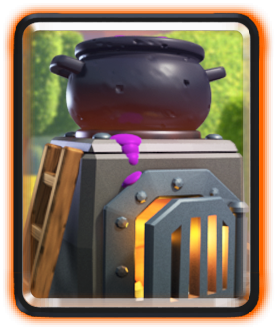 This is a Sparky. it is good to kill high damage troops, for example giant. Besides, he can easily kill away skeleton army and any troops that have long health or troops that have large quantity. It looks cool and nice, but there are 2 disadvantages, they are they can't attack air troops and need to charge for a long time to attack. This a furnace, it is a spawner like a Barbarian Hut and Goblin Hut but they are cheaper(but the tombstone is the cheapest among all spawner!). The Furnace spawns 2 fire spirit per time. The fire spirits can kill anything, this card is mostly defensive.Below you can see how you can damage them!