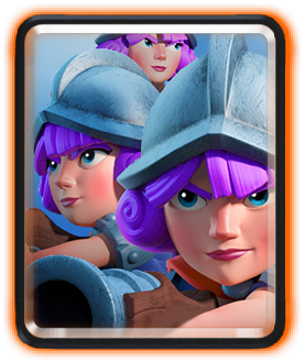 This is a Skeleton Guard. They are 3 skeletons with shields. Cool right? You must break their shields first in order to kill the skeletons. The bad thing about them is that you can kill them with Zap. You might think 'What??' But this is true because once you zap them, their shield is gone and the crown tower then kill them with her majestic and beautiful and powerful arrow!